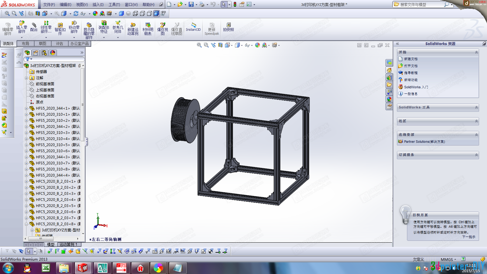 DIY了一套 全金属框架的3D打印机 XYZ模式