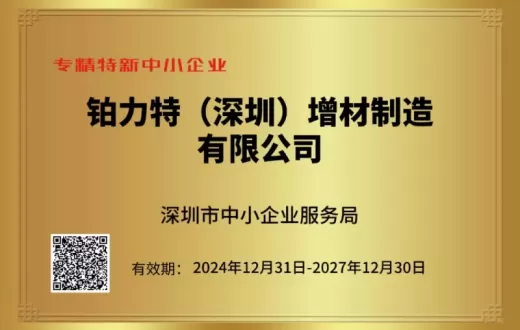 铂力特(深圳)入选2024年度“专精特新”中小企业