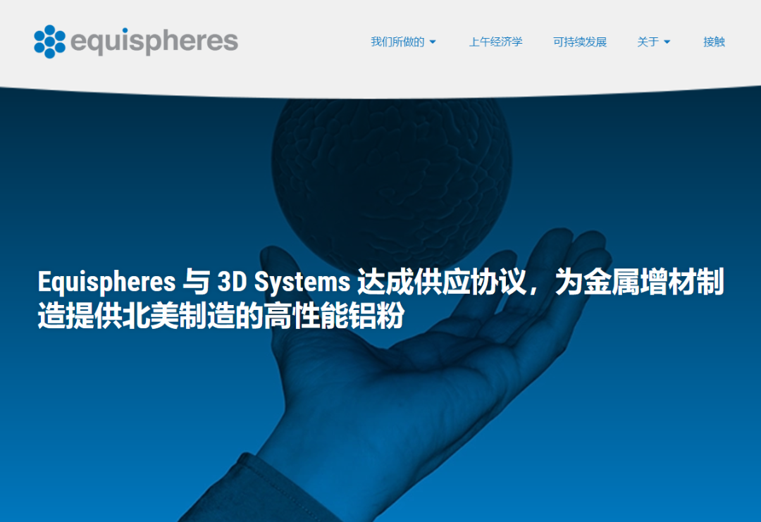 Equispheres宣布与3D Systems达成铝粉供应协议