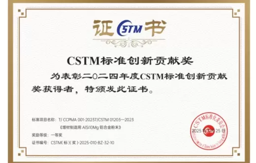 有研增材铝合金粉末团标获CSTM标准创新一等奖