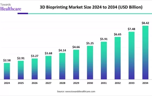全球生物3D打印市场2034年将达84.2亿美元