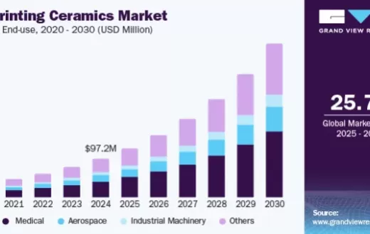 2024年全球3D打印陶瓷市场规模达9720万美元