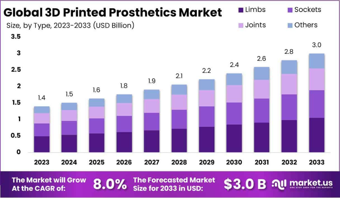 到2033年,3D打印假肢市场规模将达到30亿美元