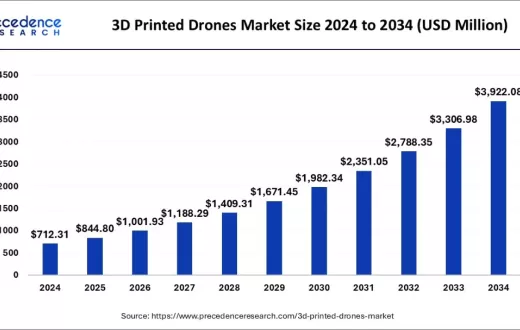 到2034年,全球3D打印无人机市场规模将达39亿美元