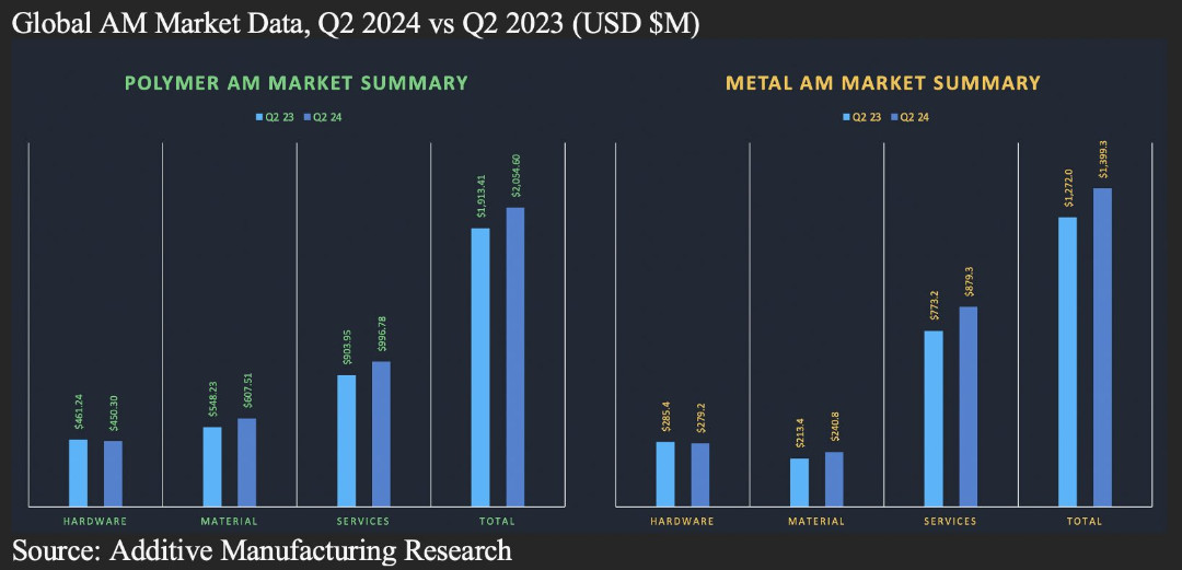 2024年Q2:3D打印市场收入达34.5亿美元,同比增长8.4%