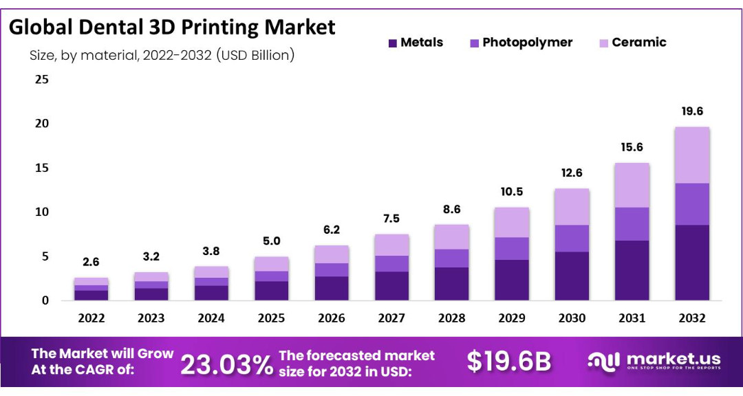到2032年,全球牙科3D打印市场将增至196亿美元