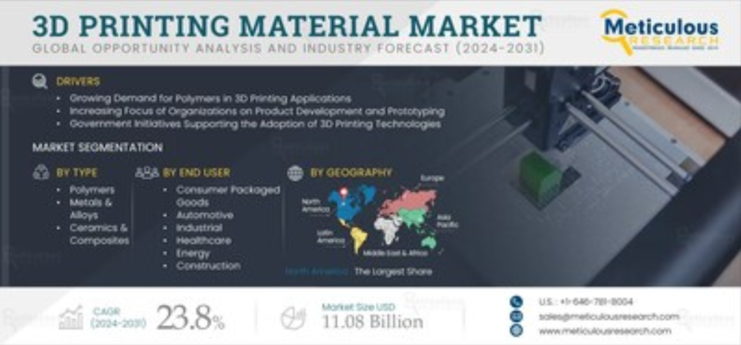 到2031年,3D打印材料市场规模预计将达110.8亿美元
